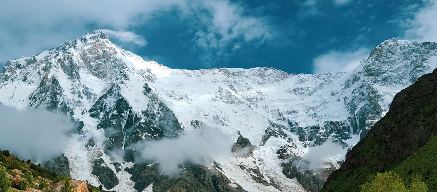 The trail stays to the north of the Rupal Gah, avoiding the terminal glacial till and a glacial lake in silty soil. Progressing on the trail through some silty glacial scape, you come across Shaigiri at 3655 meters. Shaigiri, meaning “white boulder” in Shina, is a summer suburb featuring an irregular boulder. The trek ends here expounding a more exceptional view of the Killer Mountain where it ascends vertically for about 4.6 km above Rupal as a straight wall of ice.