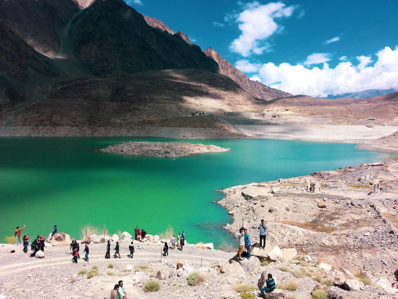 Satpara sar Lake (Urdu: سدپارہ سر جھیل), impressively prominent against the rocky terrain in its surrounding, a natural lake is a major tourist attraction near Skardu Valley, Gilgit Baltistan. The lake fed by Satpara stream from the melting ice of Deosai Plains and a picturesque island in it provides you with a serene space to spend some time in tranquility.