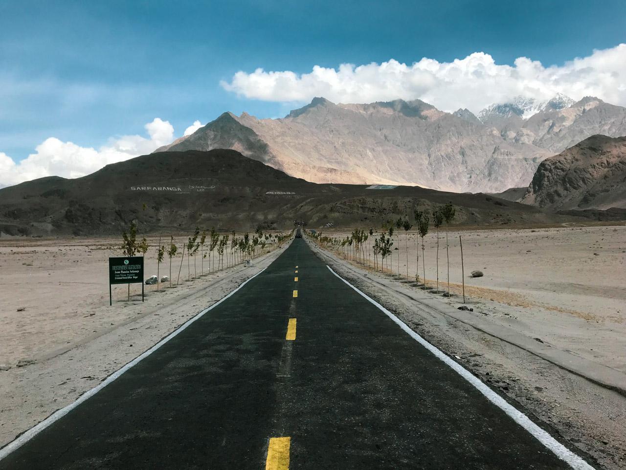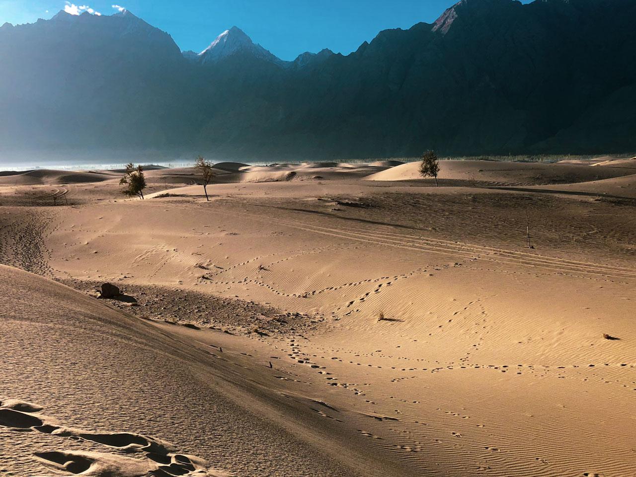 The cold desert sketched alongside River Indus, embodies enigma in its true spirit. Its topography comprises of vast white desert alongside River Indus bank, asphalted Shigar Road running amidst the sand dunes and ice-capped mountains in the backdrop.