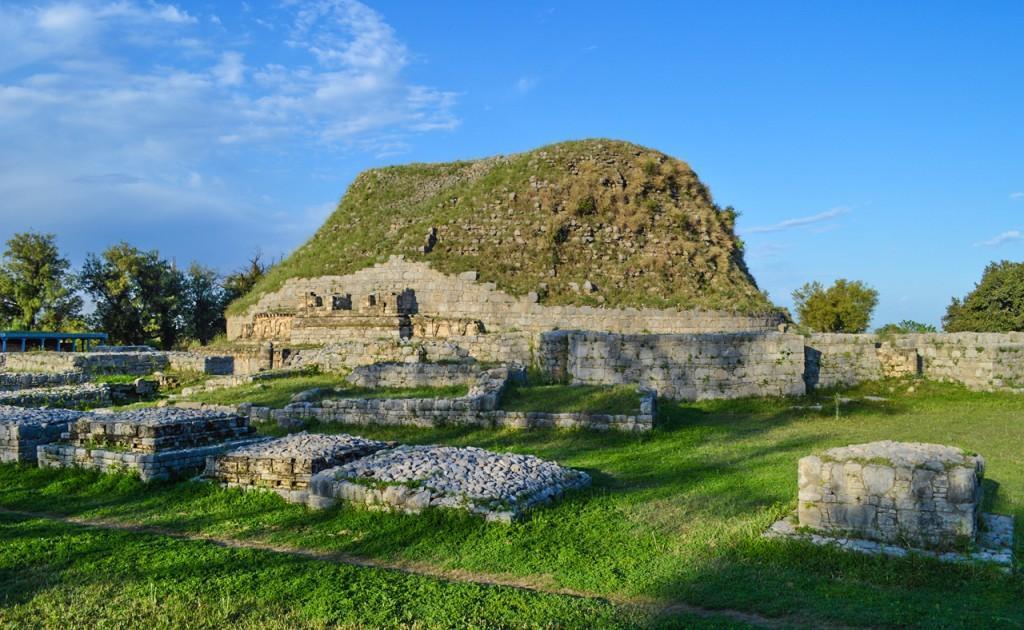 The site also shows traces of the Gandhara architectural style, using stone and brick in simple, functional forms rather than decorative excess.